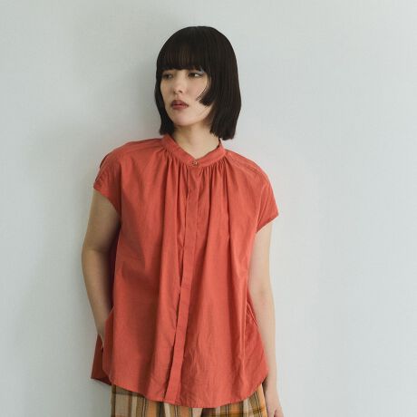 ネック回りにたっぷりとギャザー寄せたフレンチスリーブブラウスです。