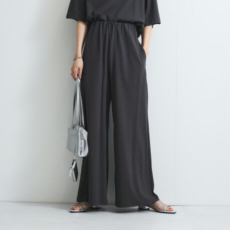 フロントはギャザーデザインになっているジャージー(カットソー)ワイドパンツです。