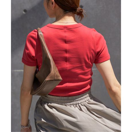 長めの半袖や、背中のダブルステッチのカットオフシームが特徴的なコンパクトTシャツ。