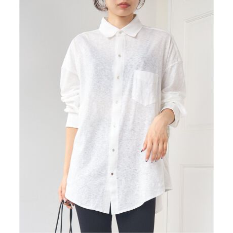 左前の前立てや、身幅や衿の大きさ、長めの袖丈など、あえて細部までメンズライクな仕様にこだわったオーバーサイズのカットソーシャツ。