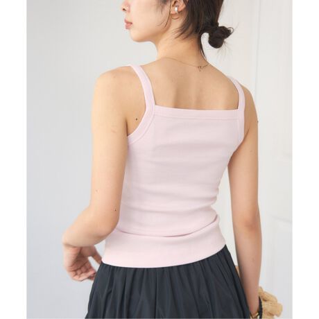 バンドネックとストラップが特徴的なクラシックなスクエアネックキャミソール。