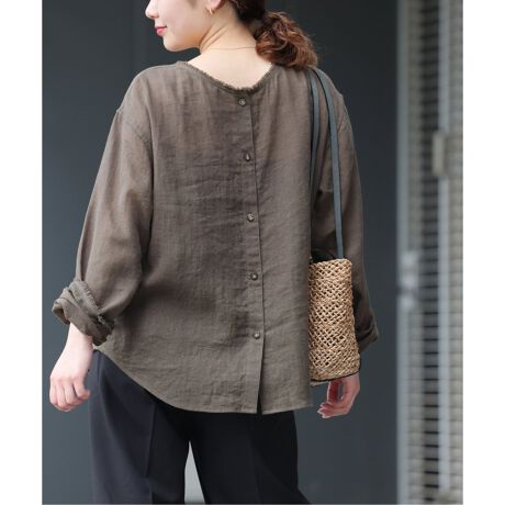 ◆清涼感があり、さらっとした着心地のラミーコットンを使用したクルーネックブラウス