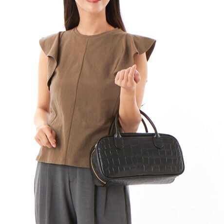 横長シルエットが使いやすい牛革2wayショルダーバッグ。シンプルながらも存在感がありコーディネートのアクセントにぴったりです。短めのハンドルに加え、太めで安定感のあるショルダーストラップ付きで、手持ちと肩掛けの2way仕様。ストラップは取り外し&長さ調節可能なので、用途やシーンに合わせて使い分けができます。ファスナーを開けるとサイドマチ付きで大きく開くので出し入れしやすいつくりです。