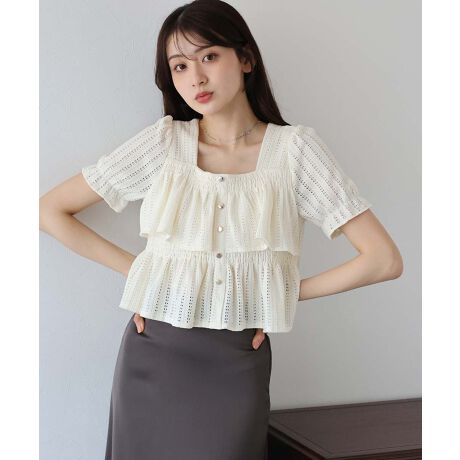 フェミニンなディテールが詰まった半袖ティアードブラウス