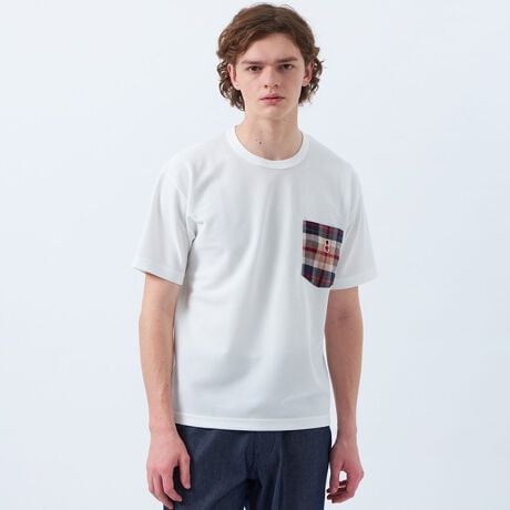 清涼感のあるカノコ素材を使用したチェックポケット半袖Tシャツ