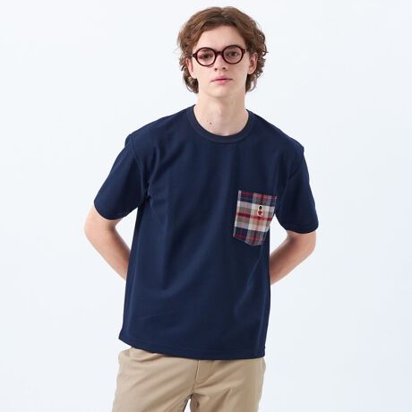 清涼感のあるカノコ素材を使用したチェックポケット半袖Tシャツ