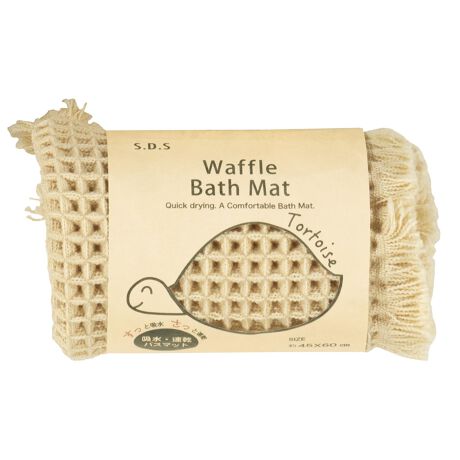 【毎日のお風呂上がりに大活躍】体から流れる水滴を吸水!「SDS バスマット トータス2 45x60cm」。【すっと吸水して、さっと速乾!】吸水・速乾性に優れやポリエステル糸を、ワッフル生地に織り込んだバスマット♪【ふんわり快適な踏み心地も魅力】ワッフルのような見た目でナチュラル感のある仕上がり。弾力があり、足裏を優しく受け止める◎【万能で嬉しいリバーシブルタイプ】滑り止め加工を施していないので、表裏を気にせず使用可能。両面同じように使えて便利。【丸洗いできて清潔をキープ】汚れが気になったら、ネットに入れて洗濯機洗い。タオル地マットのように気軽に使える!(※)洗濯機の弱モードor手洗いモードで、他の衣類と分けて洗濯してください。一部のドラム式洗濯機では、洗濯や脱水ができない場合がございます。【自宅用にもギフトにもおすすめ】空間に馴染む温かみのあるカラー&使い勝手の良いサイズ。可愛らしい亀さんのパッケージ☆