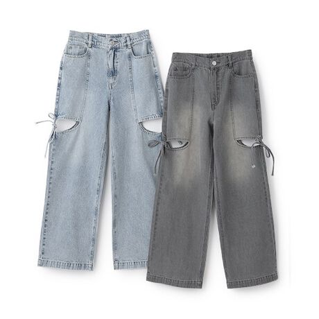 リボンスリットデニムパンツ