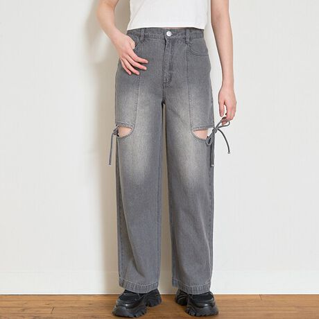 リボンスリットデニムパンツ