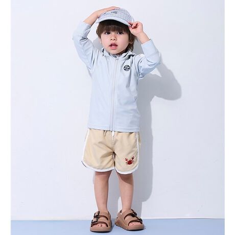 生き物たちの刺しゅうがワンポイントになったスイムパンツです。