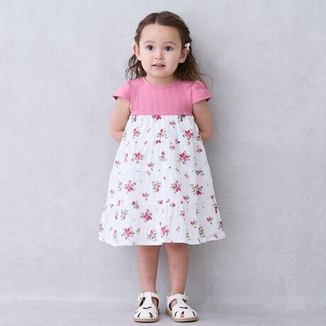 いちご柄のティアードスカートをドッキングしたワンピースです。