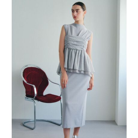 ニットワンピースはサラッとした肌触りで清涼感があり、夏でも着やすい素材を使用しています。真っ直ぐなシルエットがスタイルアップ効果を演出。
