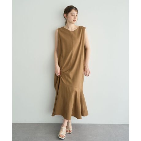 ノースリーブのシンプルなロング丈で裾の切り替えマーメイドラインが洗練されたデザインです。