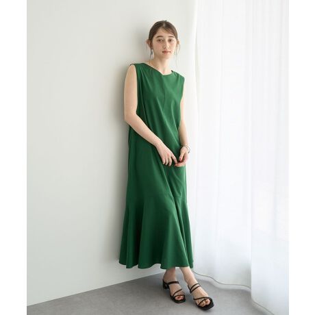 ノースリーブのシンプルなロング丈で裾の切り替えマーメイドラインが洗練されたデザインです。