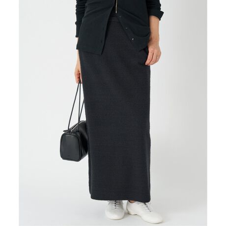 無地ながらツイード調の編地が特徴のニット素材を使用し、さりげなく奥行きのある表情に仕上げました。
