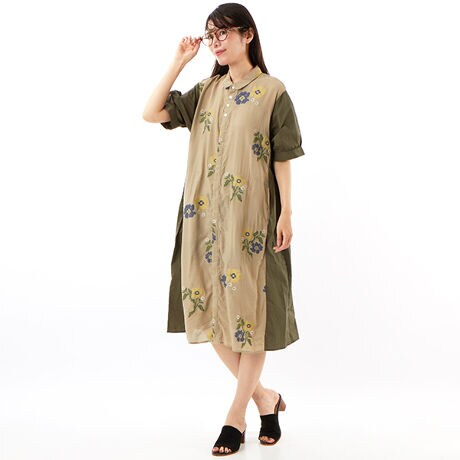 ツインフラワージャカード+コットンローンワンピース(前開き)