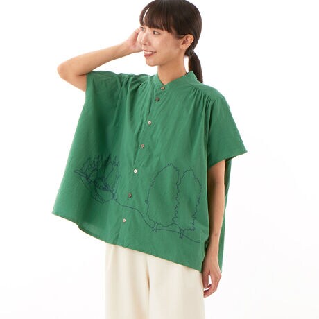 コットンローンワッシャー ホームワード刺繍ブラウス