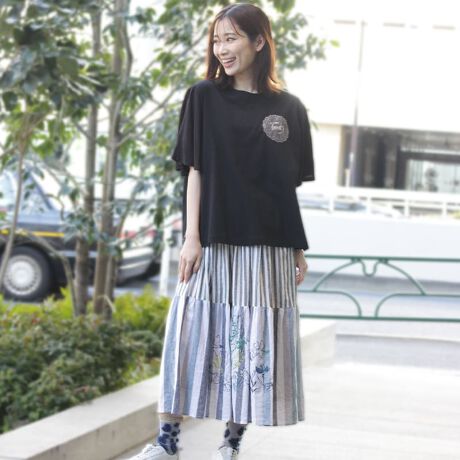 マルイウェブチャネル   /   スーパーハッカ   /   すべてのスカート   /   スカート   /   麻混先染めストライプ&チェック アクアティックプランツ刺繍ティアードスカート(裏地付き)
