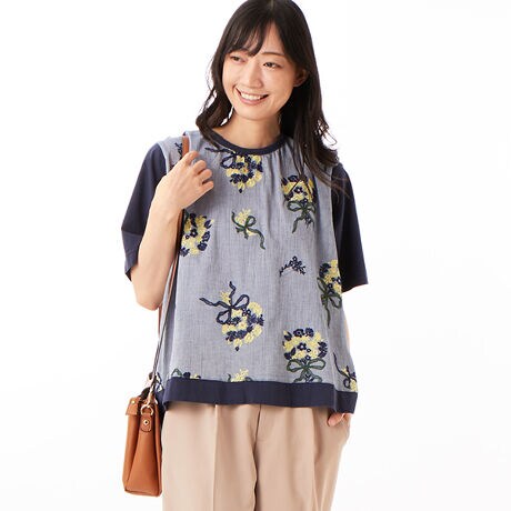 綿麻シャンブレースモールブーケット総刺繍+天竺カットソー