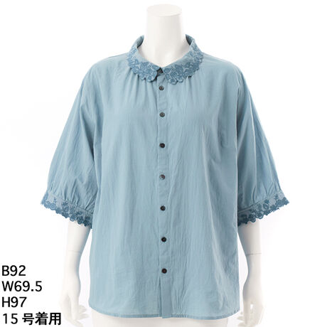 [15〜19号]コットンローンワッシャーフラワーヘミング刺繍シャツブラウス