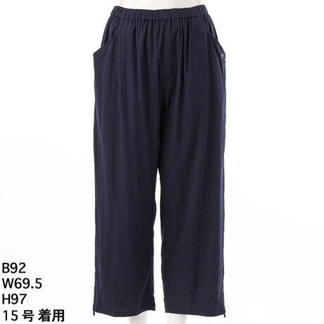 [15〜19号]ロゴフラワー刺繍 麻レーヨンストレッチドロストパンツ