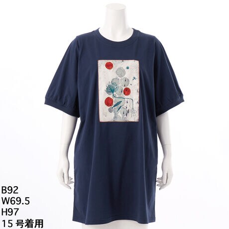 フロントに飾られたアートが印象的なチュニックカットソー。