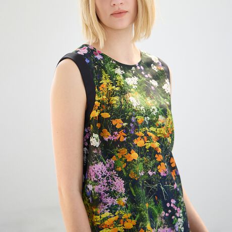 プリント部分:深みのある色調と鮮やかな発色性のガーデンフラワーのオリジナルプリント。