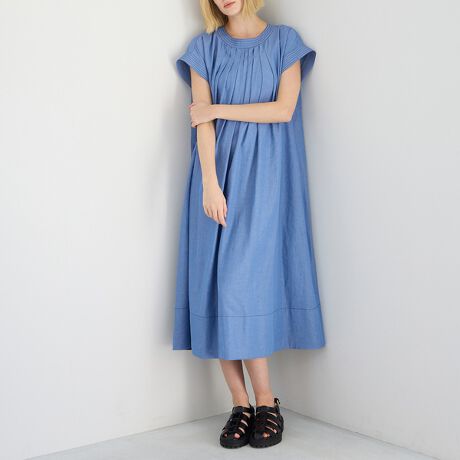 しなやかでカジュアルすぎず、品よくデニムの雰囲気を楽しめるシャンブレー素材のロングワンピース。