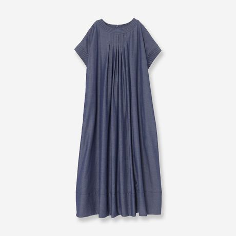 しなやかでカジュアルすぎず、品よくデニムの雰囲気を楽しめるシャンブレー素材のロングワンピース。