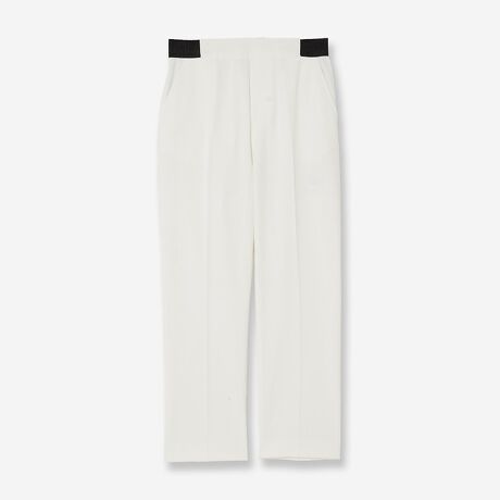 センタープレスのきれいなシルエットにミニマルな足首丈が着やせ効果も期待できるデザイン。