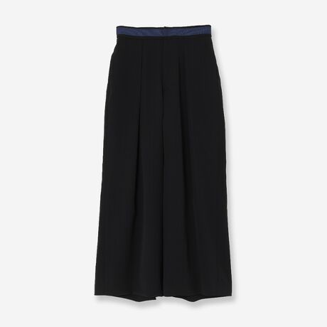 リラクシーで綺麗見えが叶う素材や楽に履けるウエストゴムのイージーな仕様、シルエットがINタックのワイド型。