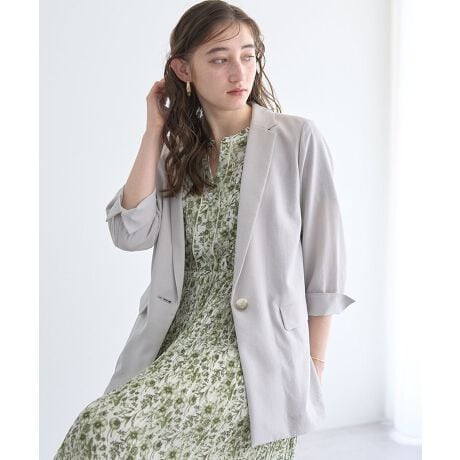 合わせやすいシングルブレストに、袖のスリットヘムで抜け感アクセントをプラス。
