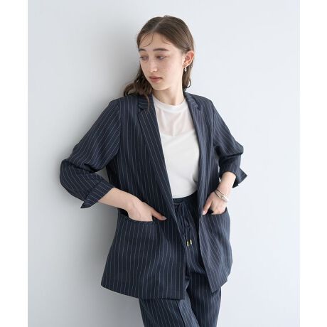 合わせやすいシングルブレストに、袖のスリットヘムで抜け感アクセントをプラス。