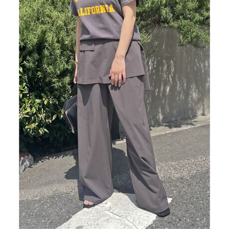 スポーティなイージーワイドパンツに同素材の巻きスカート付きで、一気にトレンド感のあるスタイリングに格上げしてくれます。パンツだけでも使えるので、着回しのきく1本です。