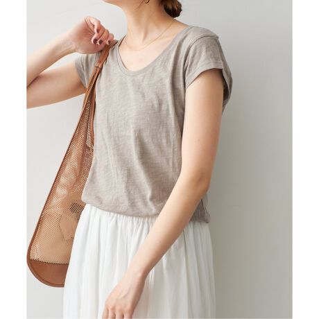 トレンド感のあるキャップスリーブと深めなUネックが女性らしいデイリーTシャツ。