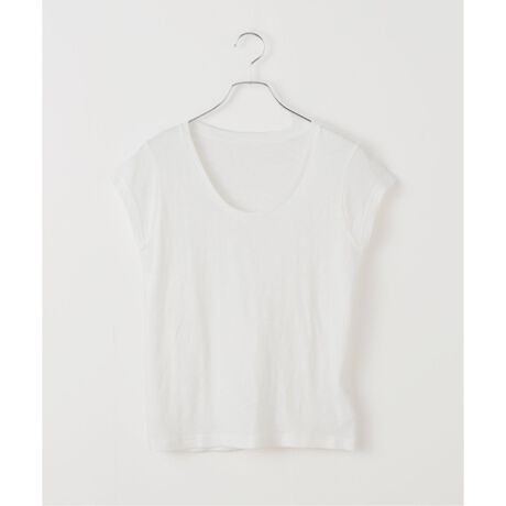 トレンド感のあるキャップスリーブと深めなUネックが女性らしいデイリーTシャツ。