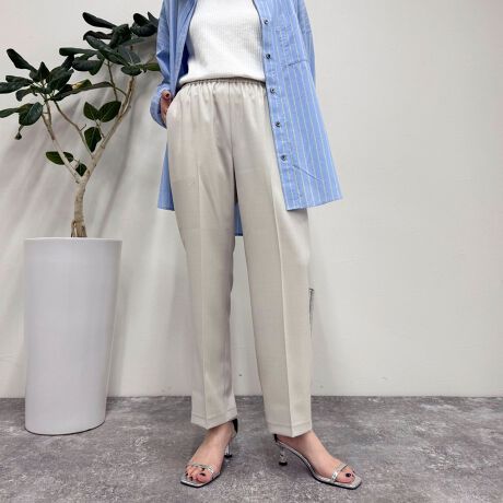 ・イージーケアなドライポリ素材を使用したテーパードパンツです
