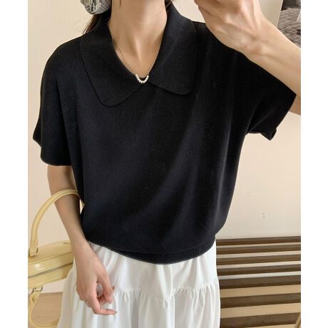 丸襟付き半袖ニットトップス
