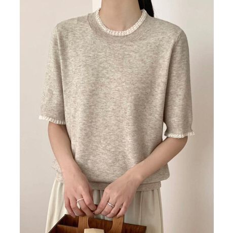 着回し力抜群のシンプルなクルーネックニットトップス。