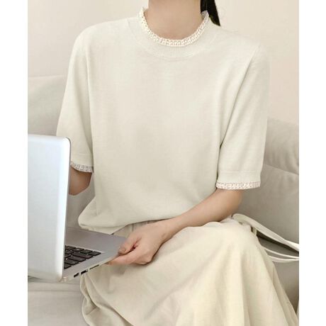 着回し力抜群のシンプルなクルーネックニットトップス。