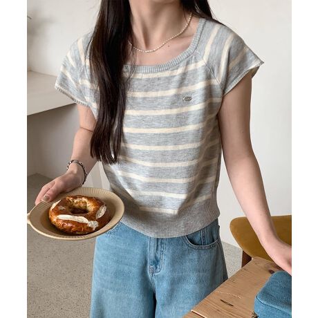 爽やかなボーダー柄にボートネックデザインを組み合わせた、大人カジュアルな半袖ニットトップス。首元をすっきり見せてくれるデザインで、抜け感のあるスタイルに♪
