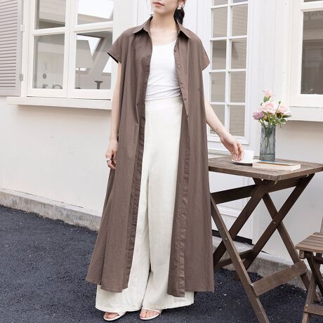 フレンチスリーブロングシャツワンピース