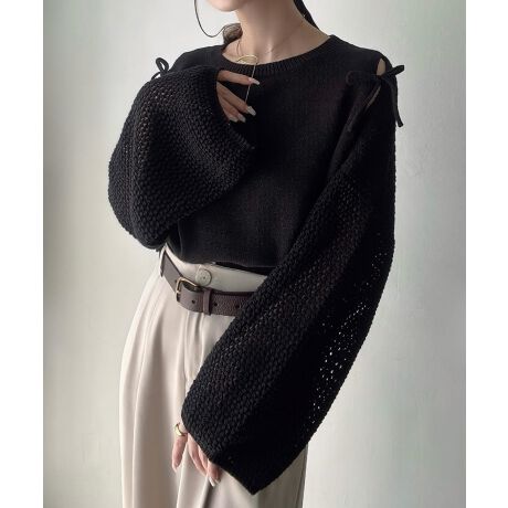 Meiru カットアウトリボン透かし編みニット