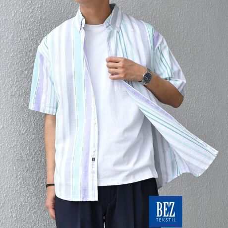 トルコ生地ブランド「BEZ TEXTILE」使用の清涼感ある半袖ボタンダウンシャツ