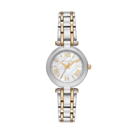 30mm径のケースに三針クォーツムーブメントを搭載した、Michael KorsのLANEYウォッチ。光沢のあるホワイトのダイヤルに、シルバートーン&ゴールドトーンのツートーンに仕上げたシックなステンレススチールブレスレットを組み合わせました。