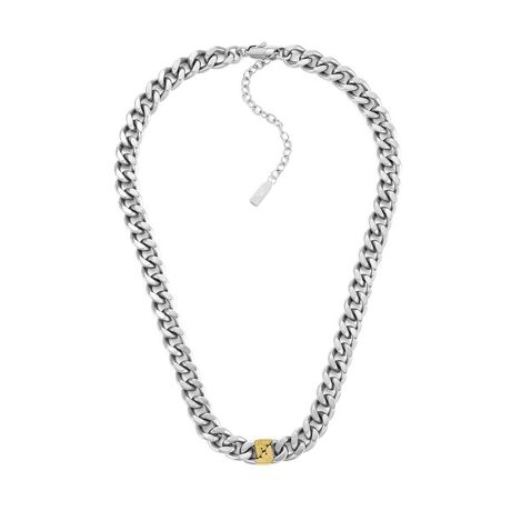 Emporio Armaniのツートーンのステンレススチール製チェーンネックレス。エッジが効いた洗練されたアイテムです。頑丈なイーグルリンクチェーンに艶出し仕上げと艶消し仕上げを交互に施し、立体的で光り輝くルックを演出しています。大胆でありながら洗練されたアクセントを添える、あらゆる装いを格上げするアイテムです。