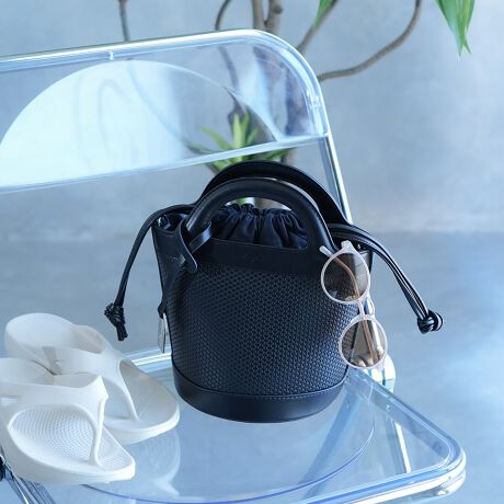 【Ungrid/アングリッド】 籠バッグ風型押し 巾着付きバケツショルダーバッグ