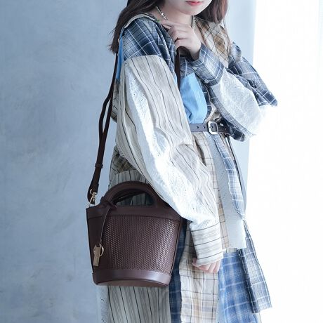 【Ungrid/アングリッド】 籠バッグ風型押し 巾着付きバケツショルダーバッグ