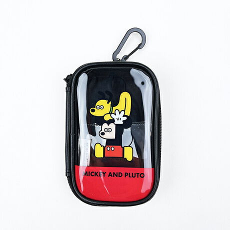ディズニーアートシリーズのキャリーポーチ。ミッキーのユニークなアートがかわいい!カラビナ付きなので鞄につけて持ち運べます♪