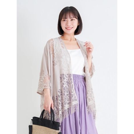 繊細なレースの透け感でエレガントなムードを漂わせるポンチョカーディガン。